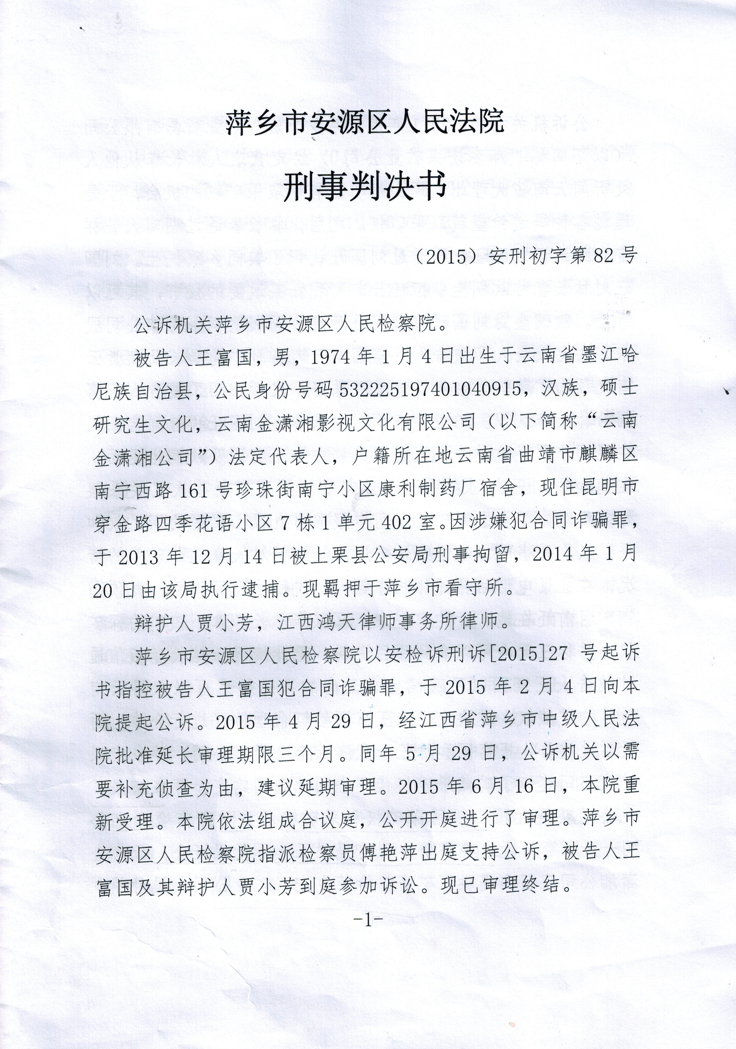 王富国被控合同诈骗宣告无罪—贾小芳律师辩护